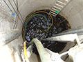 Trabalhos de mergulho vários na construção da central termoelétrica da tapada do Outeiro, corte submarino de estacas prancha.